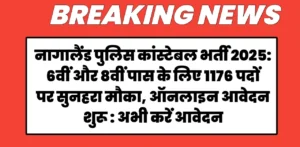 अगर आप नागालैंड पुलिस कांस्टेबल बनना चाहते हैं और पुलिस विभाग में सेवा देने का सपना देखते हैं, तो यह सुनहरा अवसर है। केवल 6वीं या 8वीं पास उम्मीदवार भी आवेदन कर सकते हैं।