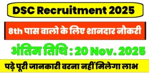 अगर आप कम योग्यता में सरकारी नौकरी की तलाश कर रहे हैं, तो DSC East Jaintia Hills District Recruitment 2025 आपके लिए एक शानदार मौका है। 8वीं पास उम्मीदवार भी इन पदों के लि ए आवेदन कर सकते हैं। आवेदन की अंतिम तिथि 20 नवंबर 2025 है, इसलिए देरी न करें और आज ही आवेदन करें।