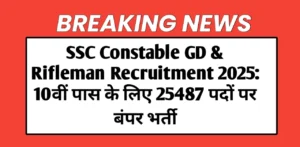 अगर आप 10वीं पास हैं और सरकारी नौकरी की तलाश कर रहे हैं, तो आपके लिए यह खबर बेहद खास है। Staff Selection Commission (SSC) ने वर्ष 2025 के लिए Constable (GD) और Rifleman (GD) के कुल 25487 पदों पर भर्ती के लिए आधिकारिक नोटिफिकेशन जारी कर दिया है।